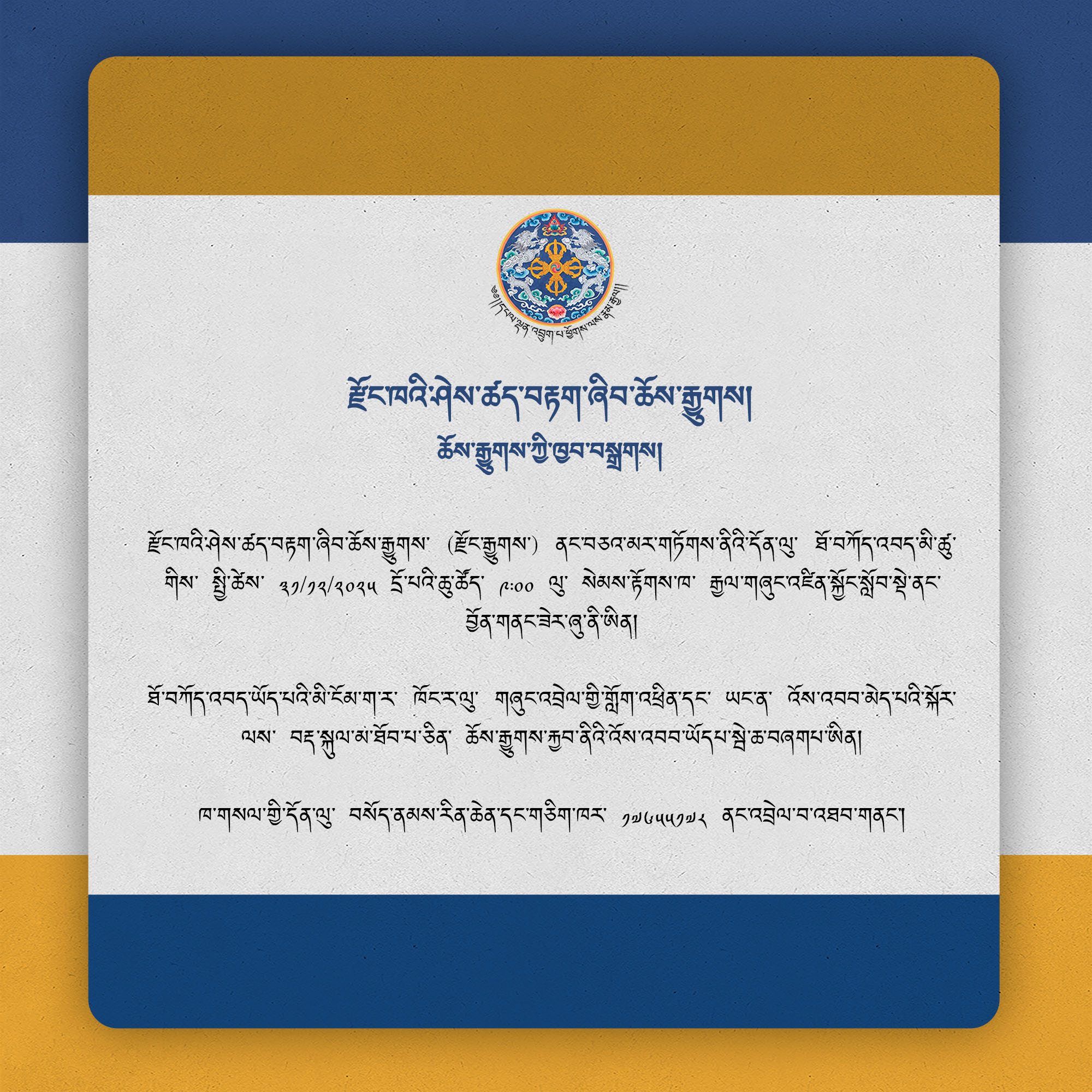 རྫོང་ཁའི་ཤེས་ཚད་བརྟག་ཞིབ་ཆོས་རྒྱུགས་ (རྫོང་རྒྱུགས་) ནང་བཅའ་མར་གཏོགས་ནིའི་དོན་ལུ་ ཐོ་བཀོད་འབད་མི་ཚུ་གིས་ སྤྱི་ཚེས་ ༣༡/༡༢/༢༠༢༥ དྲོ་པའི་ཆུ་ཚོད་ ༩:༠༠ ལུ་ སེམས་རྟོགས་ཁ་ རྒྱལ་གཞུང་འཛིན་སྐྱོང་སློབ་སྡེ་ནང་བྱོན་གནང་ཟེར་ཞུ་ནི་ཨིན།
